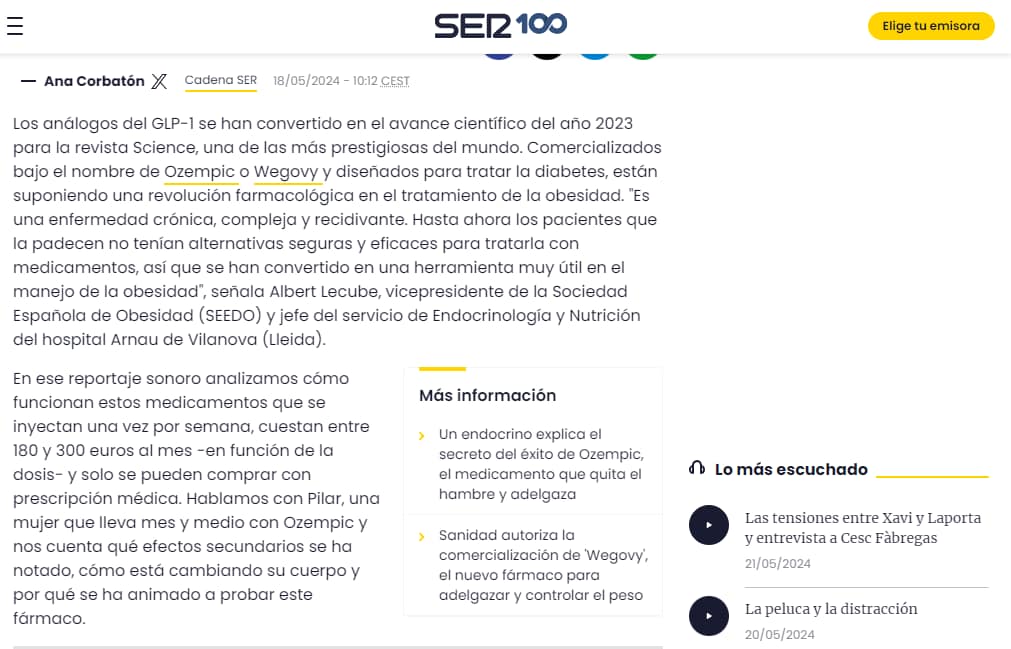 Abriendo además la posibilidad de colaboración con las unidad Clínicas Certificadas en Obesidad para ofrecer un tratamiento a los pacientes, real, personalizado, adaptado a sus circunstancias y con el objetivo de cambiar para siempre el estigma que sigue lastrando a la obesidad